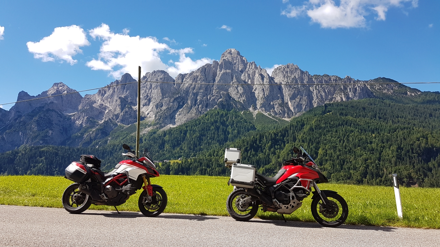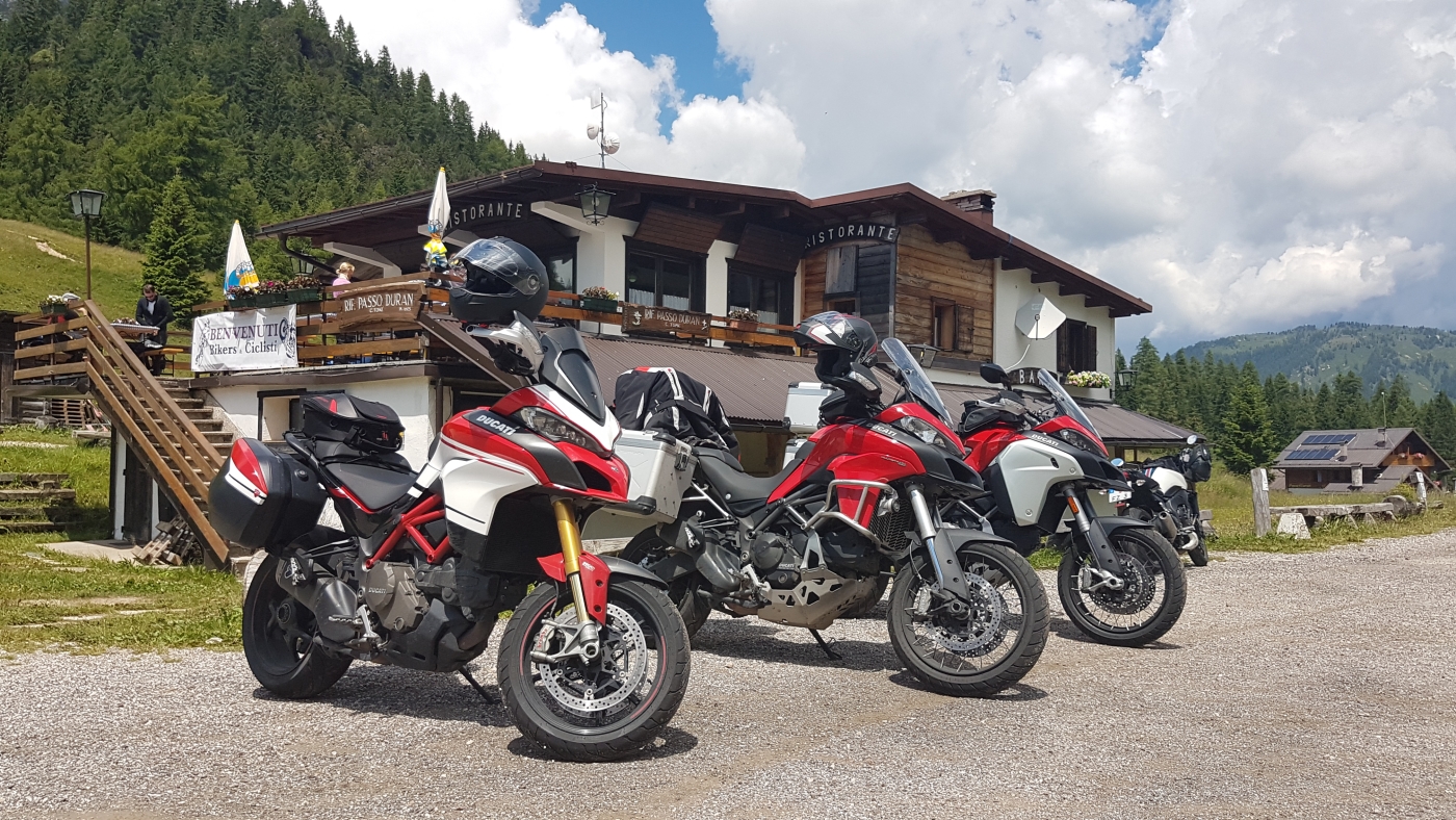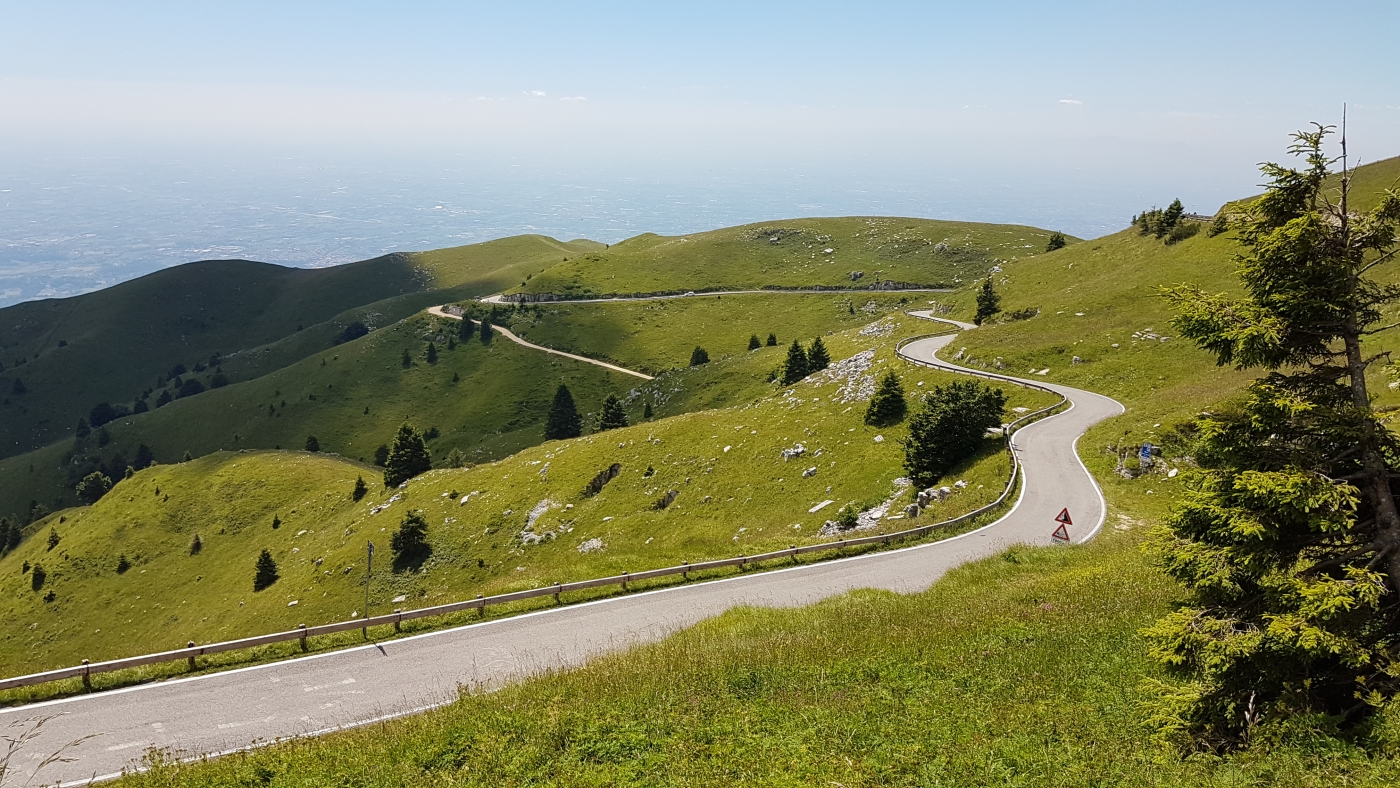 De dagroute van vandaag is in het eerste deel geheel binnendoor, door de mooie Dolomieten. Het tweede deel gaat over de snelweg naar Bologna om zo snel mogelijk door het drukke stedelijke gebied tussen de Dolomieten en Bologna heen te komen. Aan het begin is de weg smal en stijl met een aantal kleine haarspeldbochten en erg mooi om te rijden. Bij km stand 23 passeer je het kleine bergmeer Lago di Alleghe. Na een aantal mooie en kleine passen rijd je bij km stand 101 de Monte Grappa (1.775m) op. Deze lijkt niet hoog, maar boven op de berg heb je bij helder een schitterend uitzicht over de Po vlakte en je zou aan de andere kant zelfs Venetië kunnen zien liggen. Na de Monte Grappa begint het doorgaan de deel van de route bij km stand 150 tot aan het hotel.