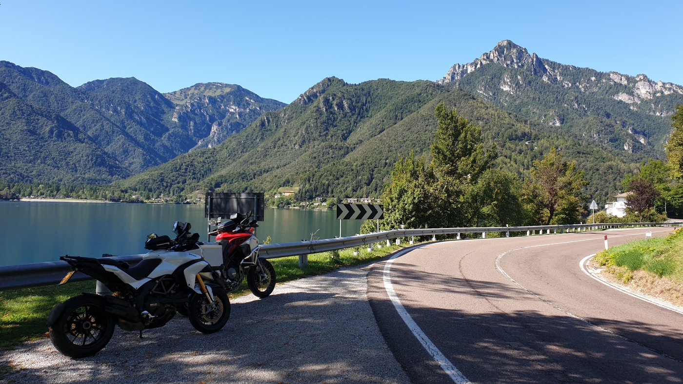 Vandaag rijd je een spectaculaire motorroute door het Parco Naturale Paneveggio en de Pale di San Martino, een absolute droom voor iedereen die van motorrijden in de Dolomieten houdt. Deze eerste dag van je motorreis staat in het teken van beroemde Dolomieten passen, uitdagende Alpenpassen en eindeloze bochten. Na een uurtje sturen bereik je de Passo Lavazé op 1808 meter hoogte, bekend om zijn extreme hoogteverschillen en een stijgingspercentage van 18 procent. Hier zie je nog duidelijk de sporen van het noodweer van 2018 waarbij miljoenen bomen omwaaiden, een indrukwekkend gezicht tijdens je motorvakantie Italië. Daarna volgen nog meer legendarische bergpassen: de Passo Niger, Passo Karer, Passo Valles, Passo Rolle, Passo Brocon en de Forcella. Elke pas biedt een unieke combinatie van bochten, panorama’s en rijplezier, waardoor dit een perfecte dag is voor iedereen die houdt van sportief motorrijden en genieten van de mooiste wegen van Noord-Italië.